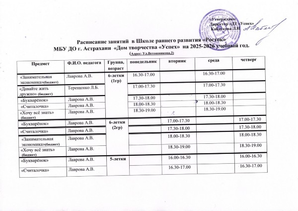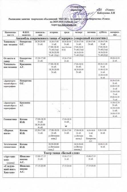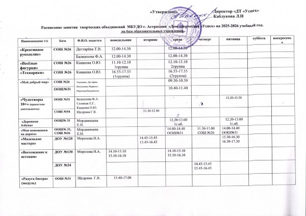 Расписание занятий в творческих объединениях на базе образовательных организаций