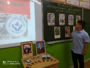 1. "Имена, которые нельзя забыть", мероприятие прошло в школьном музеи, где учитель истории рассказал и познакомил детей с партой героя.