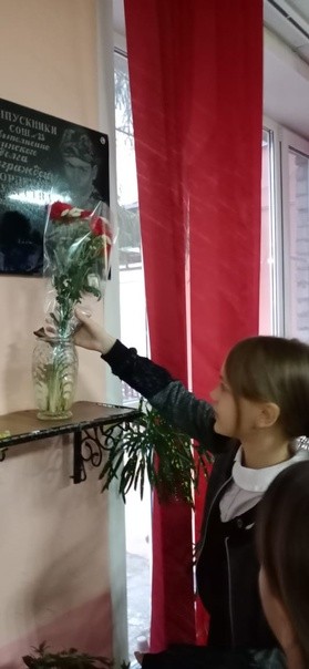 26 января ученики 5 А класса СОШ №35 (кл. рук. Милеева А.И.) возложили живые цветы к мемориальной доске, посвященной Памяти выпускников школы Абдулаева Р. и Горбачева П., погибшим при исполнении воинского долга. Эта акция проводится в школе еженедельно.